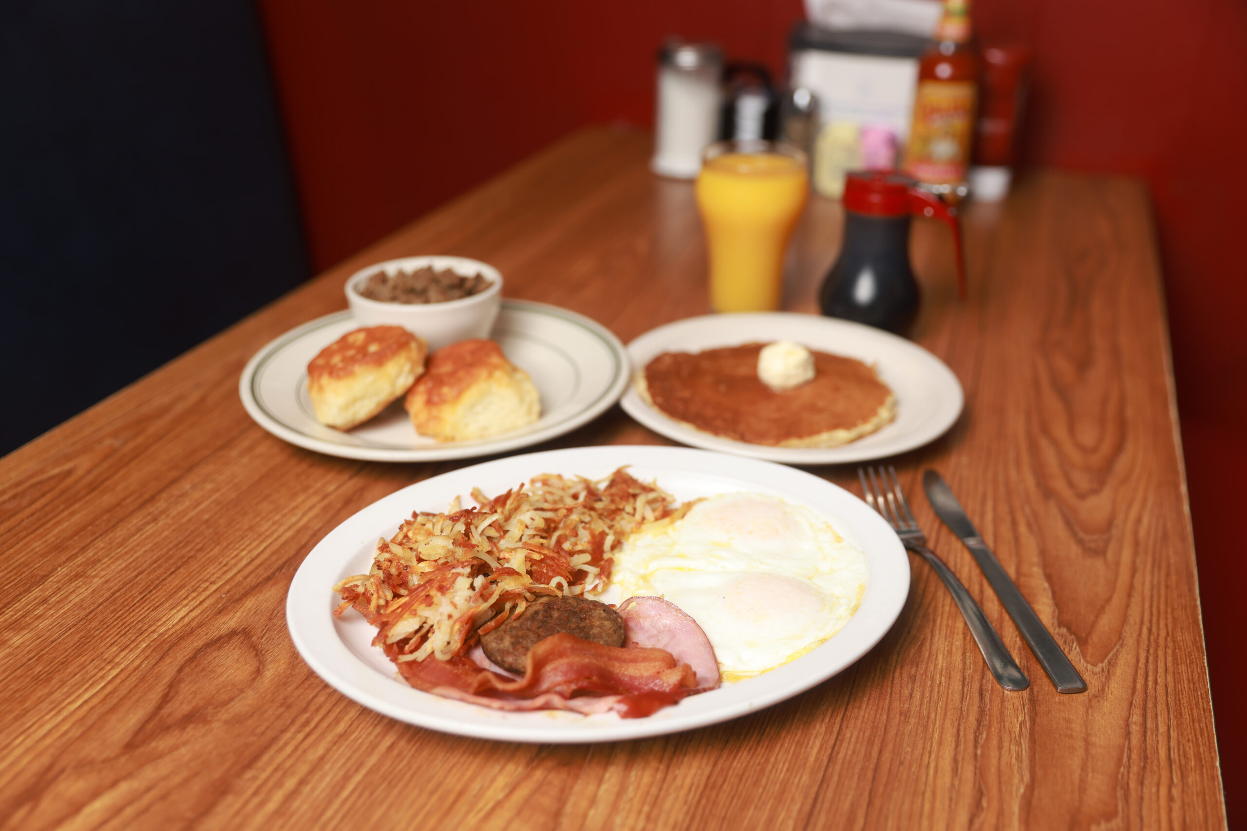Omelets, pancakes, migas tacos